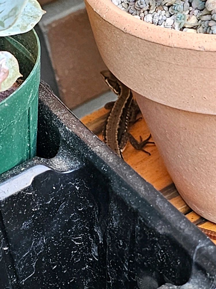 植木鉢の所に、カナヘビさんがいました。