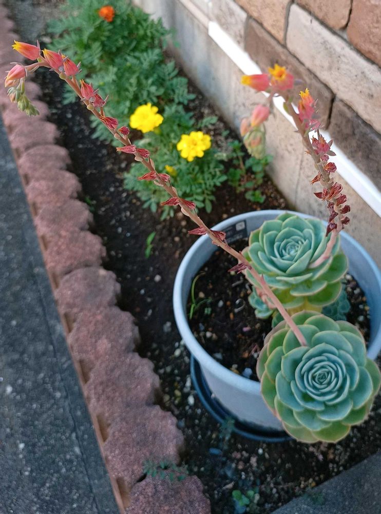 分かる人には直ぐに名前分かるけど、フリフリのコも近所のエケベリア(これだけは名前分かる〜七福神だよね)も、見たことあるコらです〜多肉のもう1つ可愛いのはフォルムだけど花が咲いたらもう1つ可愛いよね〜🧡💛💕✨
