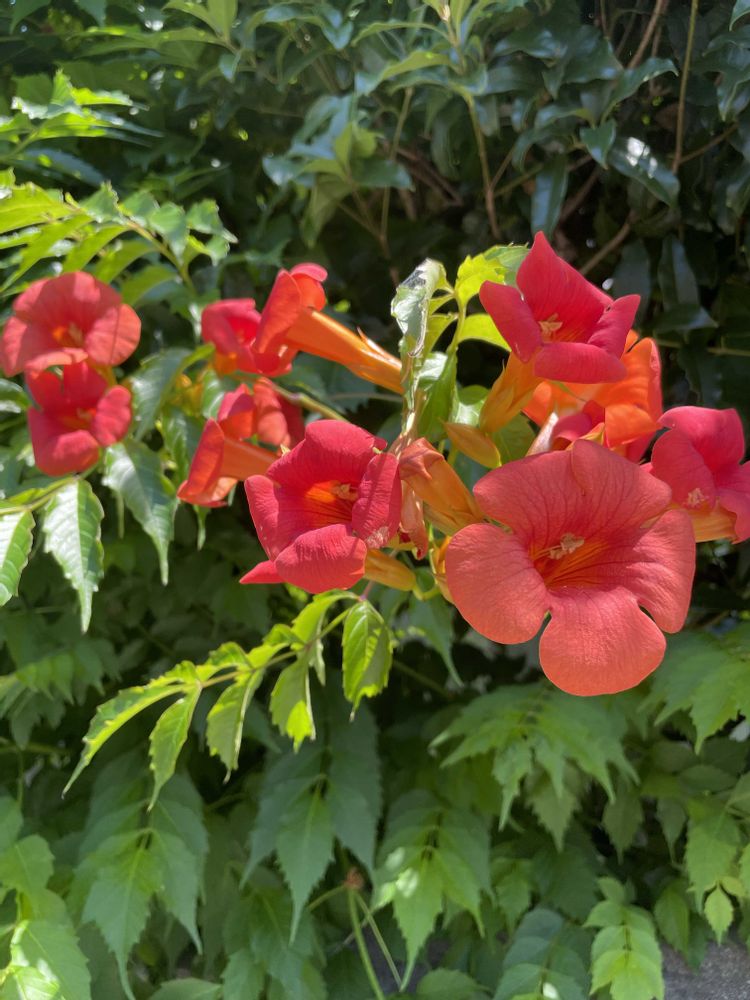 ノウゼンカズラが咲き始めましたね〜この所の夏日の影響でしょうか🤔少し早い様な気がしますが…我が家もチラホラ咲き始めて七夕🎋飾りの様です〜🤭