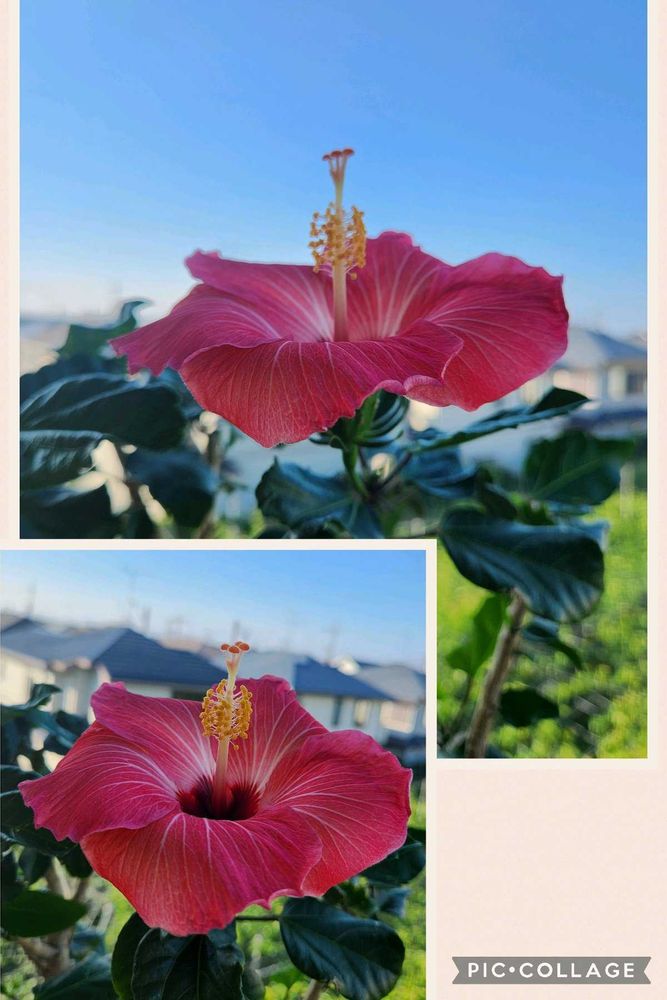 ハイビスカスさん、お空の方を向いて元気に咲いてますね〜🌺
