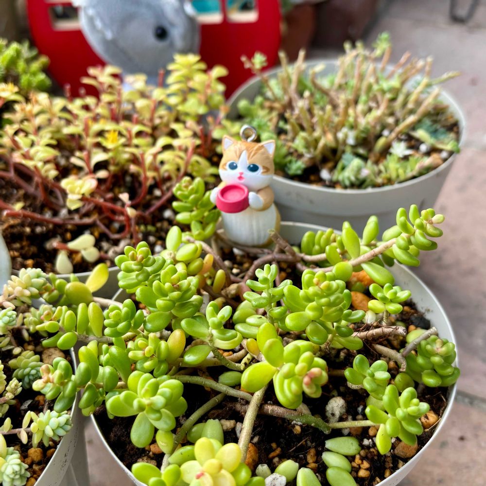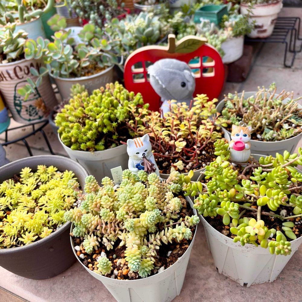 冬にお迎えして植え替えてなかった伸び放題のセダムたちを植え替えたりカットしたりしました(*'▽'*)