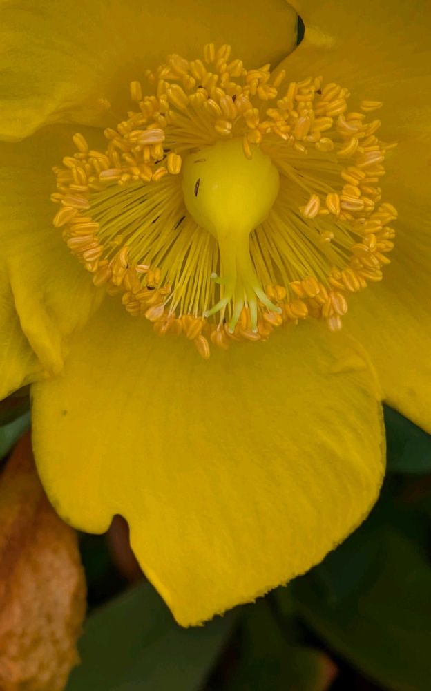 セイヨウキンシバイやビヨウヤナギと違って雄しべは花弁より短いので、初めから雌しべの柱頭が5つに割れているのがよくわかる💛