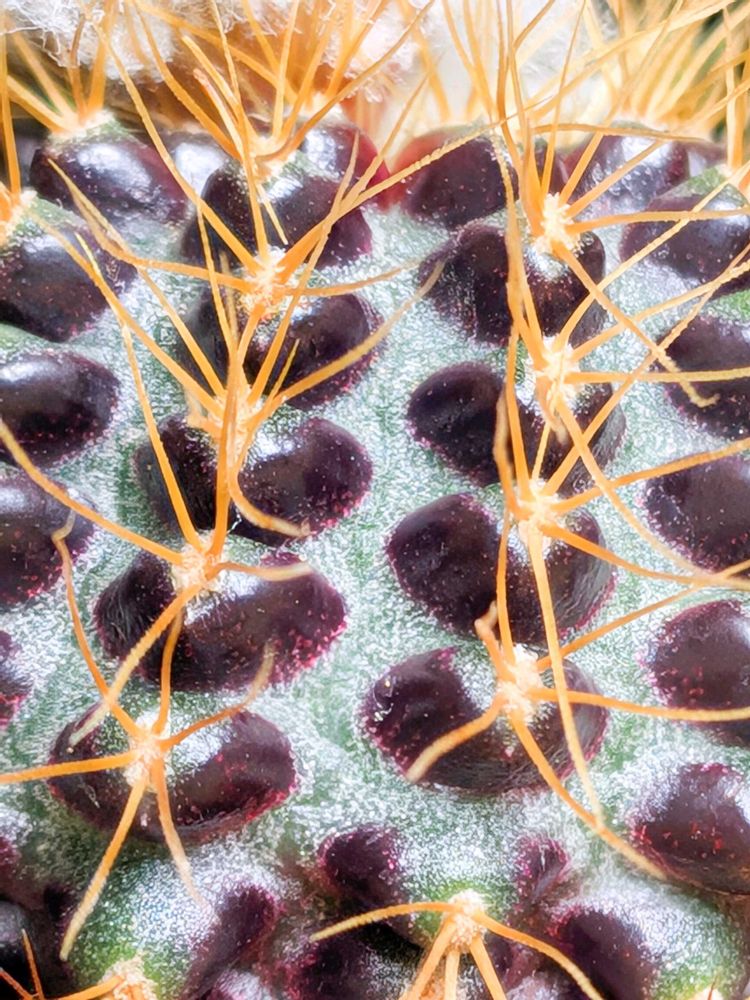緑に紫のドット模様も、黄色い柔らかそうな棘も、頭にわたあめ乗ってるのも、全部…なんか凄い😆👍