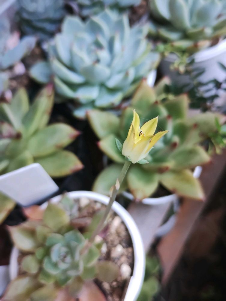 エケベリアにチューリップみたいに黄色のお花が〜可愛い💛✨