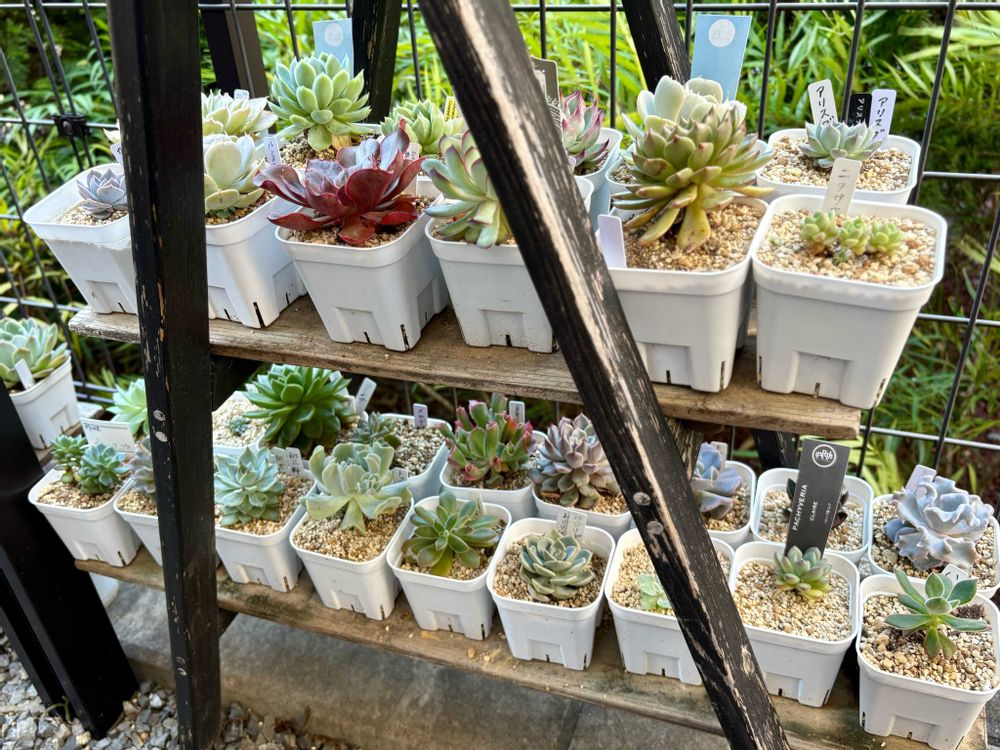 多肉コレクション棚のこのあたりがエケベリアコーナーかな。