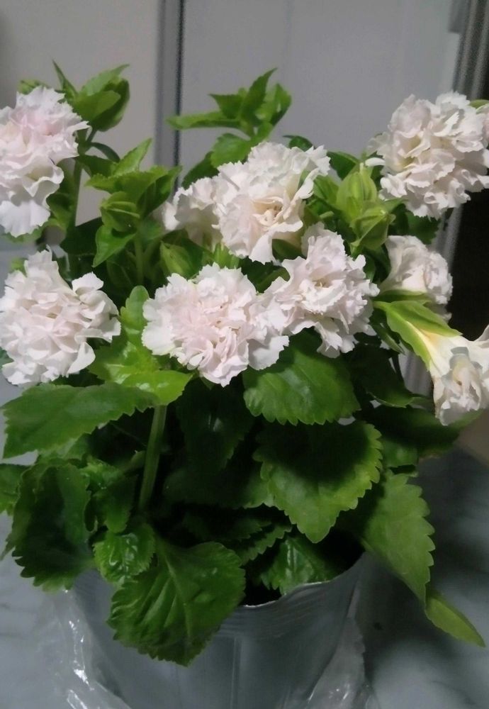 私も白いペチュニアかと思いましたが、蕾も葉っぱも、普通のトレニアと一緒でビックリしました。