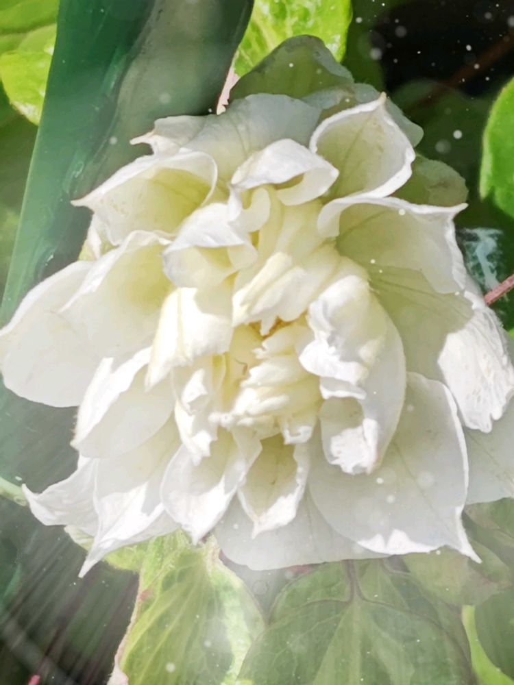 真っ白いクレマチスさん、素敵〜🤍花びらの枚数が多くてボリューミーです〜🥰