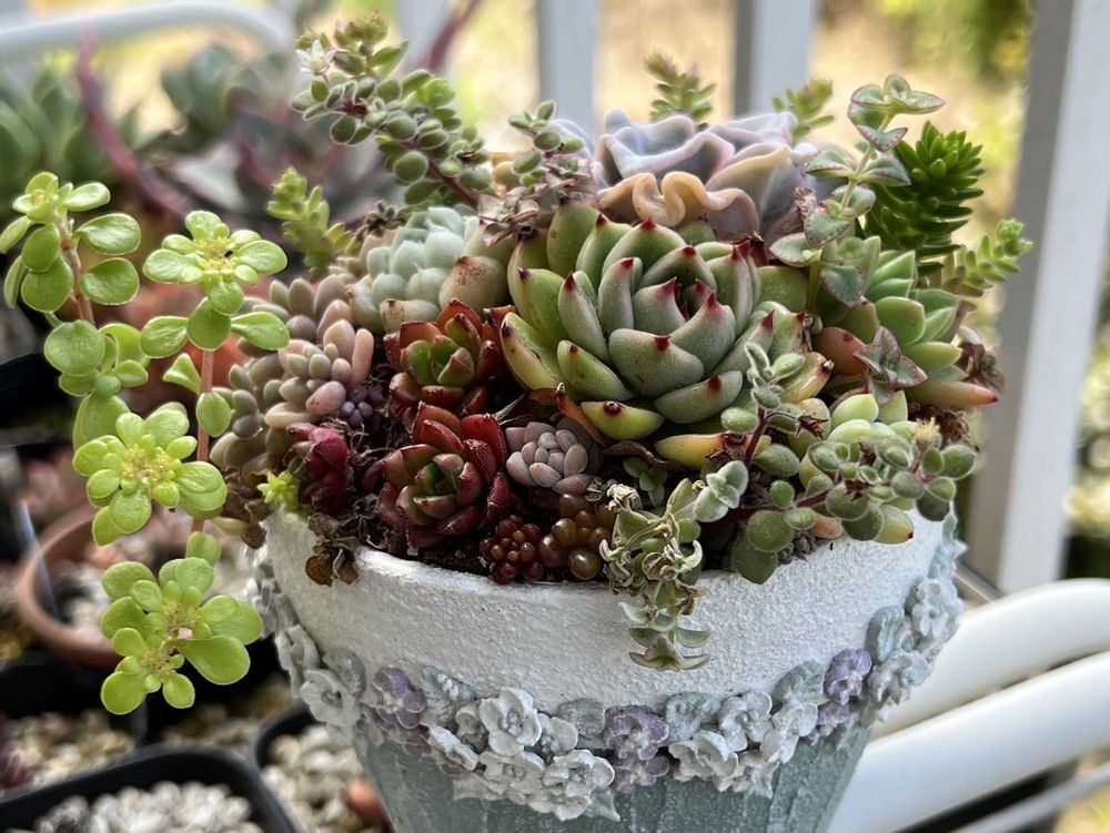 タニ友に頂いた寄せ植えも良い感じにセダムがちょい暴れで、これまた可愛いです😍