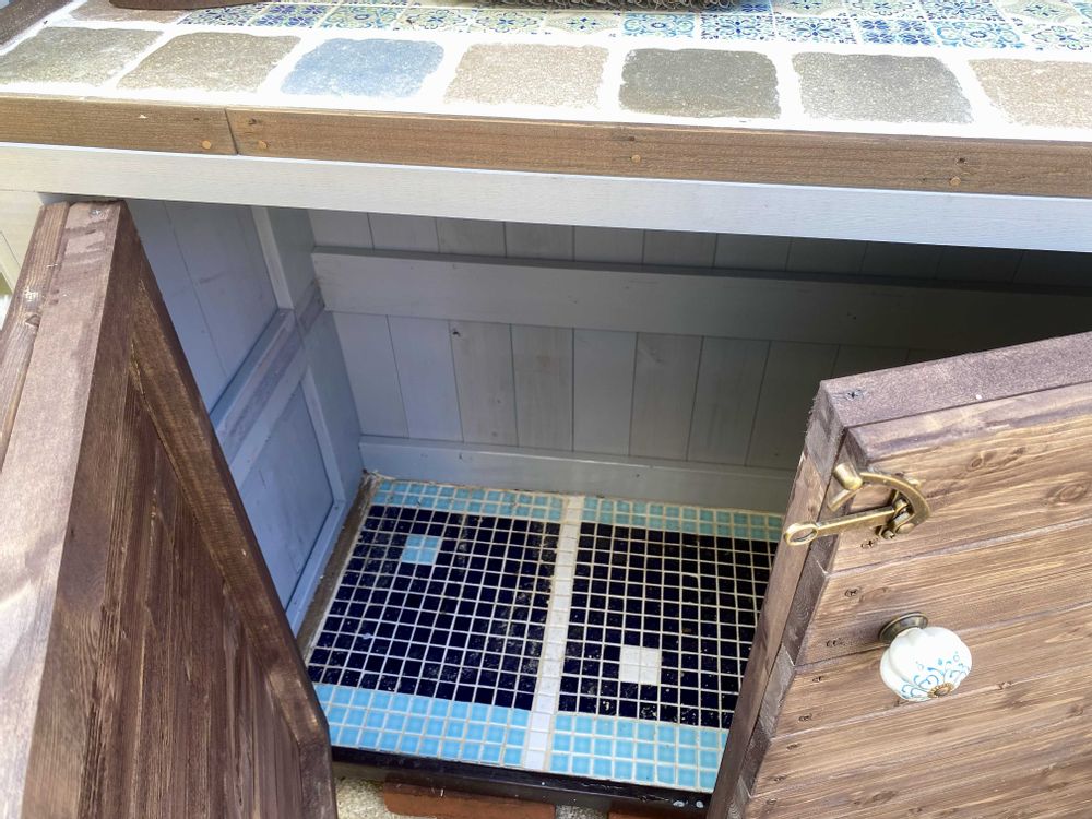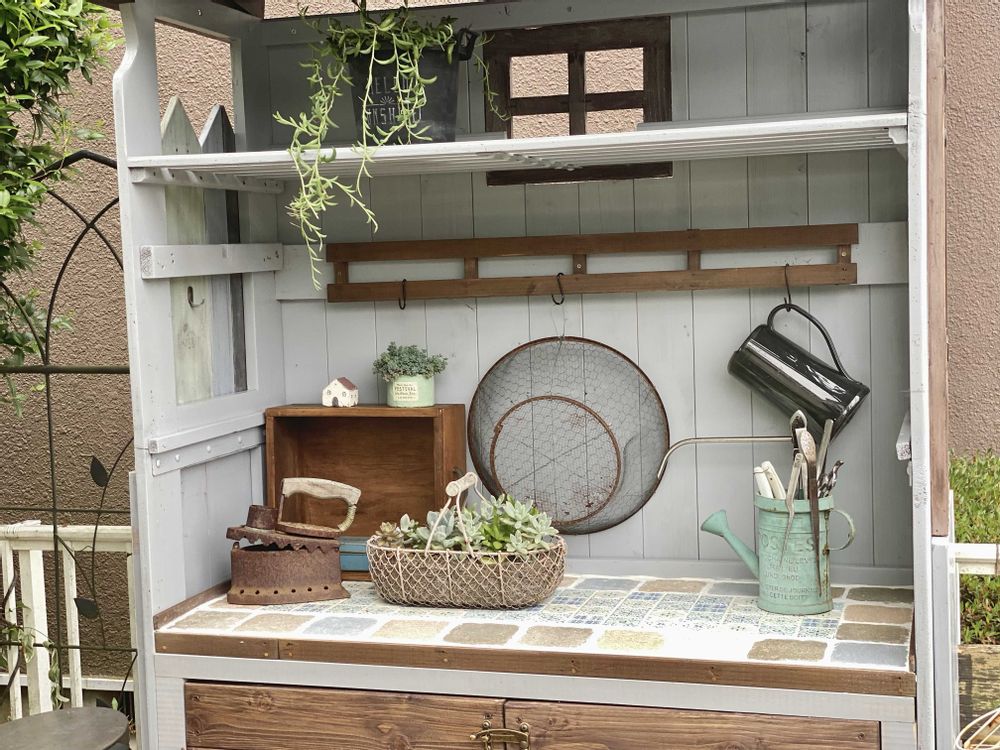 一番下がタイル張りだったので、これにヒントをもらって💡作業台にタイルを貼りました。