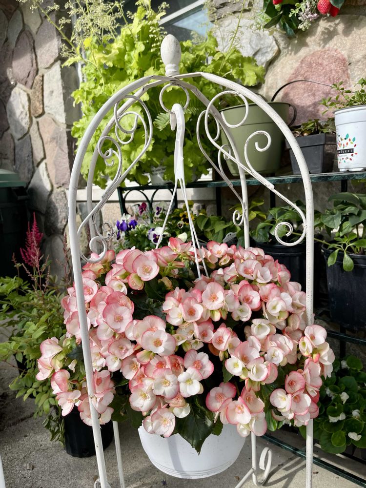 日陰用のベゴニアのハンギングバスケット