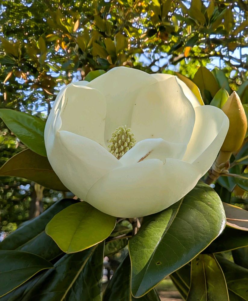 タイサンボクの木が高く、せっかく咲いてもお花が上を向いていたりして、なかなか全体を見ることができません