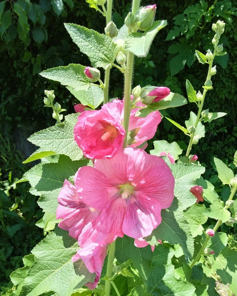 タチアオイは一本の枝にいくつも花が咲いてますね。