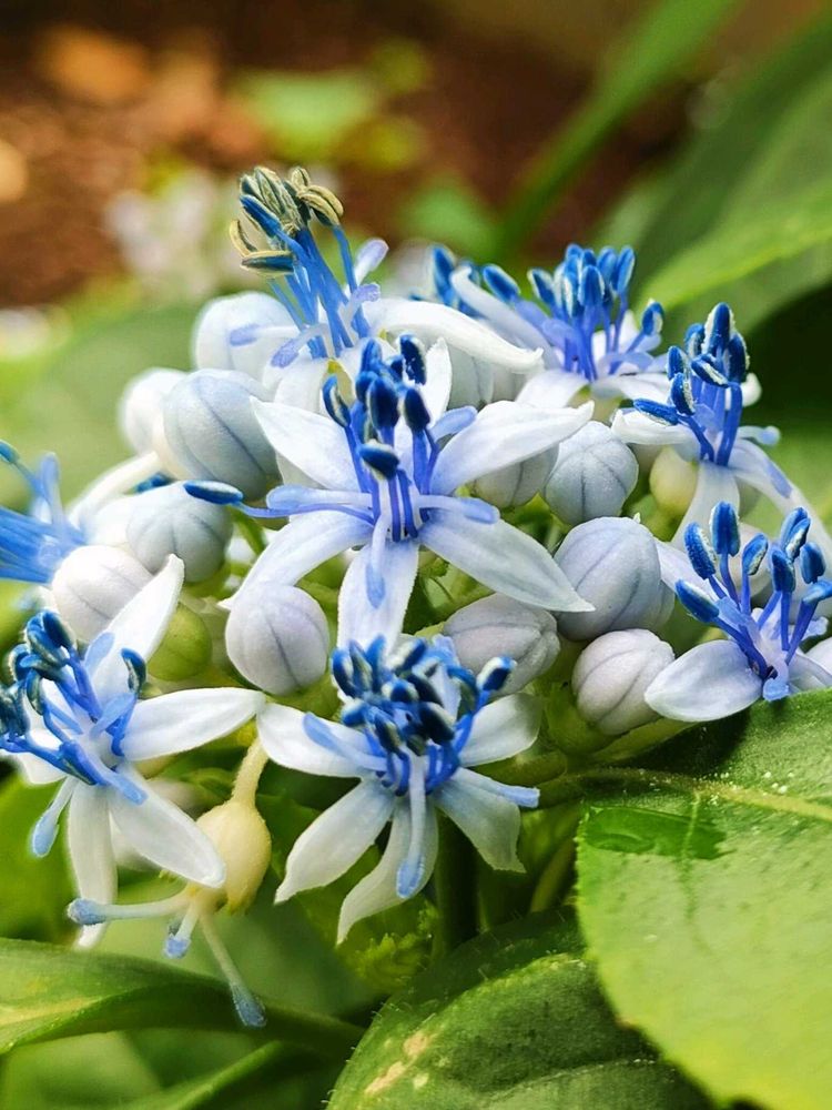コロンとした丸い形、蕊のブルーに癒されます💙