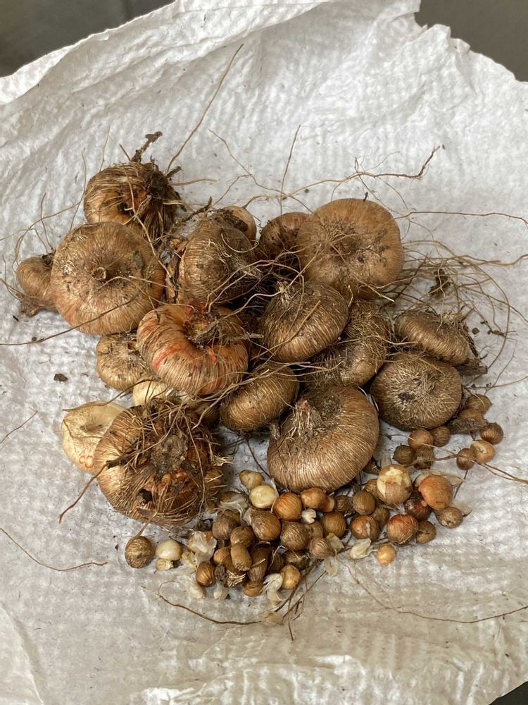 また、5月に楽しませてくれたイキシア(ビリディフローラ)もプランターの土が乾き、地上部分が枯れたため球根を掘り上げ。