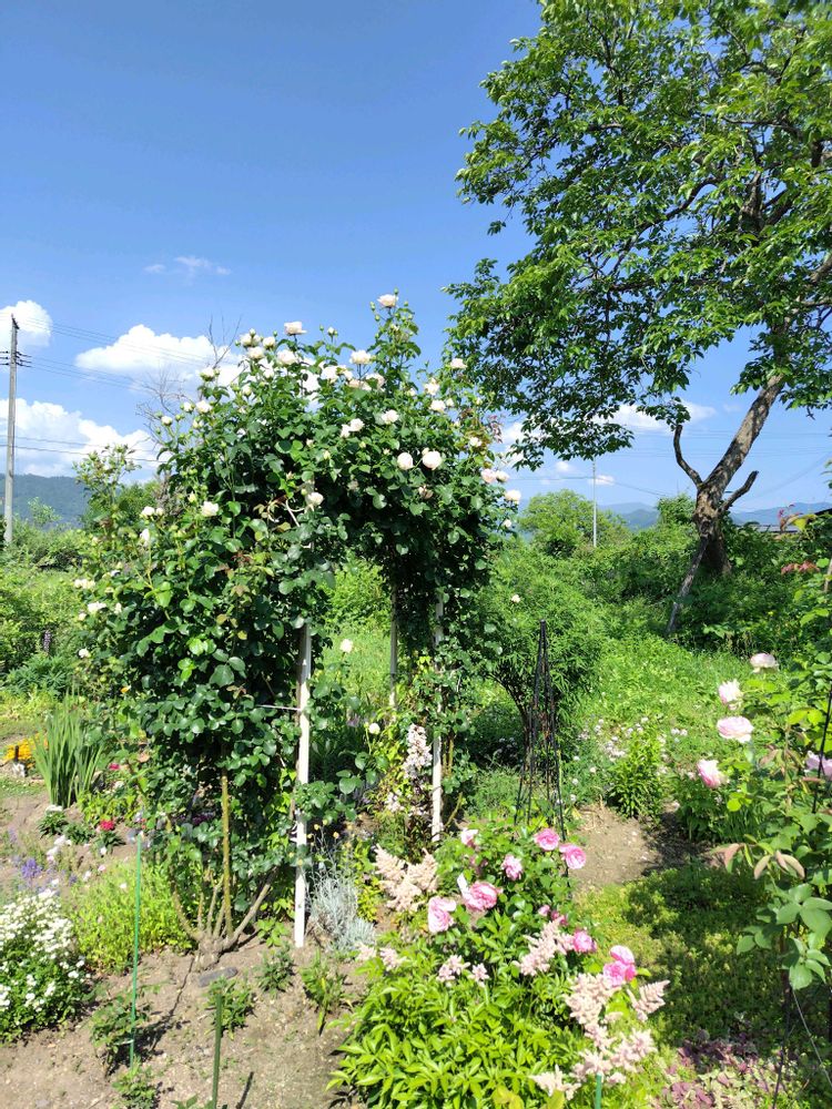 1枚め…ジリジリと太陽が照りつける中でも、薔薇🌹は元気です!