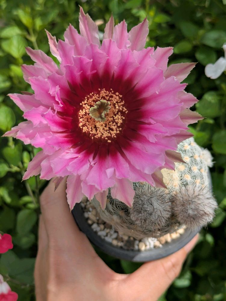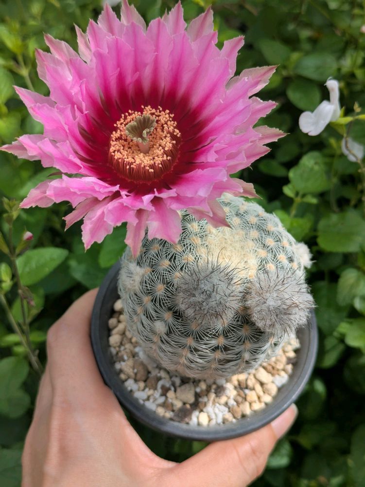 トゲは真っ白なのにお花はけっこう派手な感じ😁