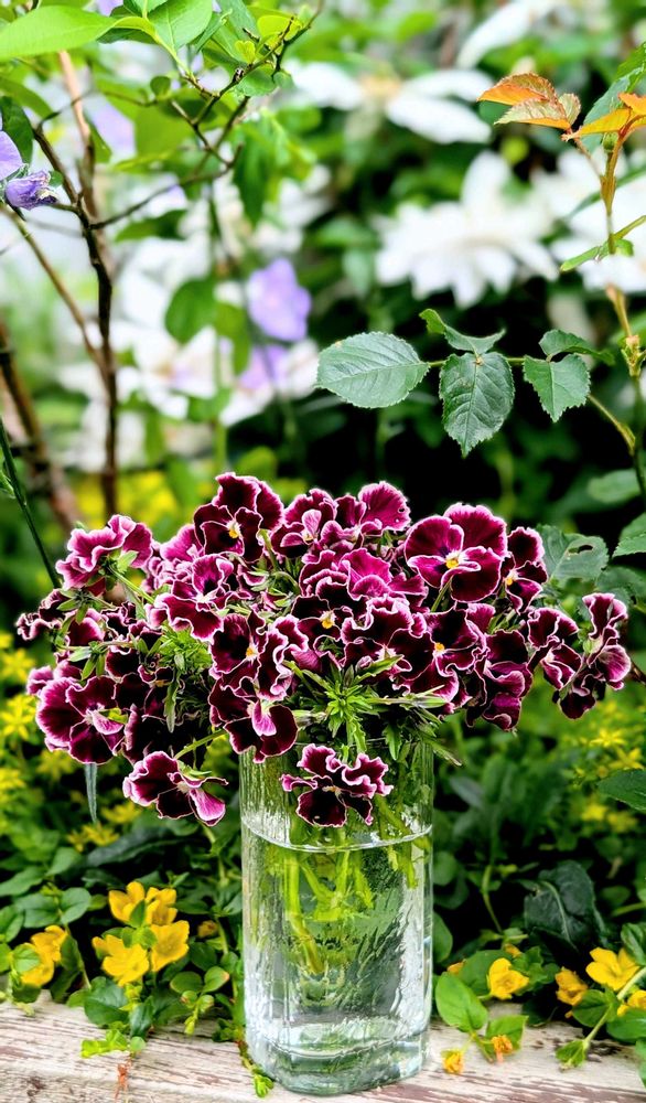 他のビオラは花びらが薄くて持たなさそうなのでミルフルだけコップに挿して飾りました💕