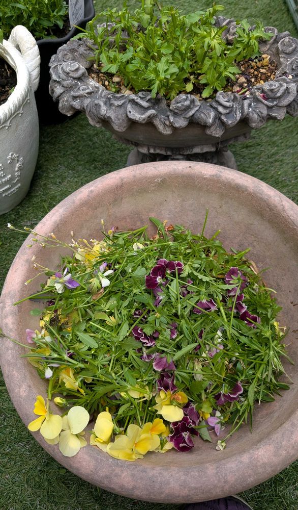 1⃣寄せ植え待ちのポットをようやく寄せ植え( ´•ᴗ•ก )