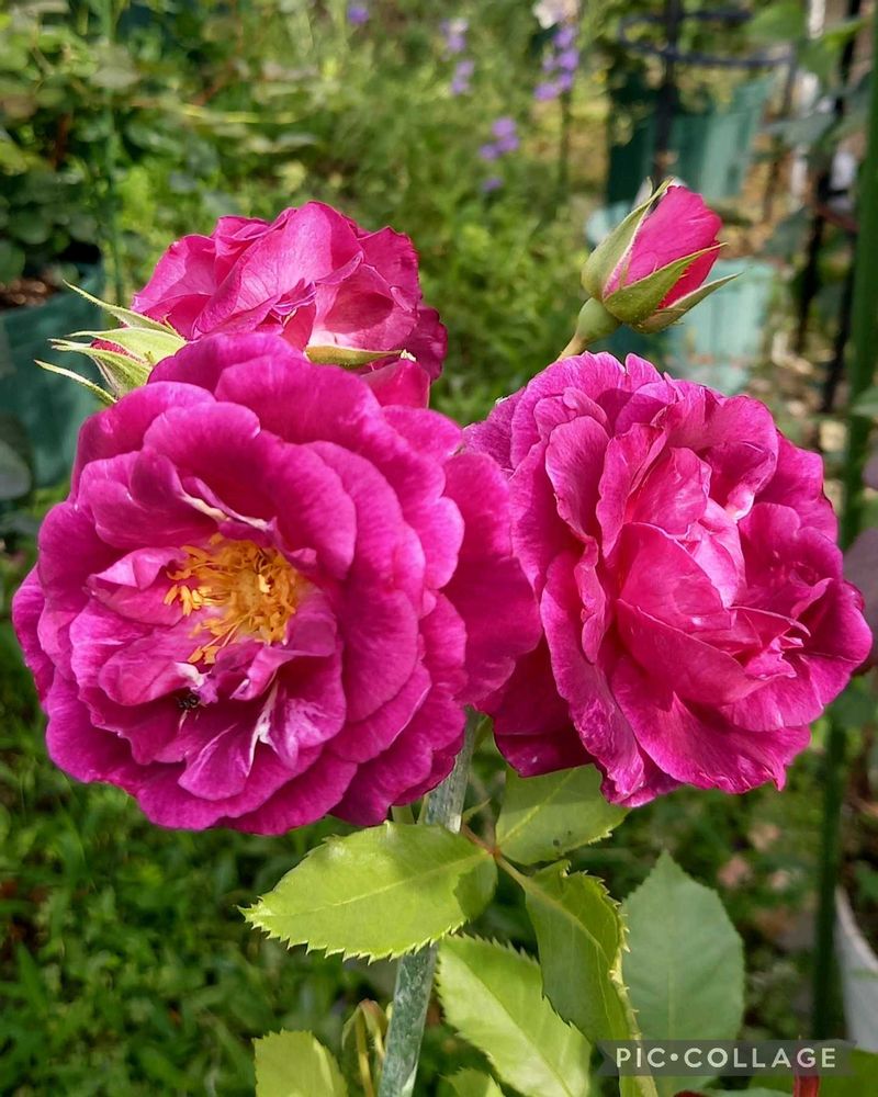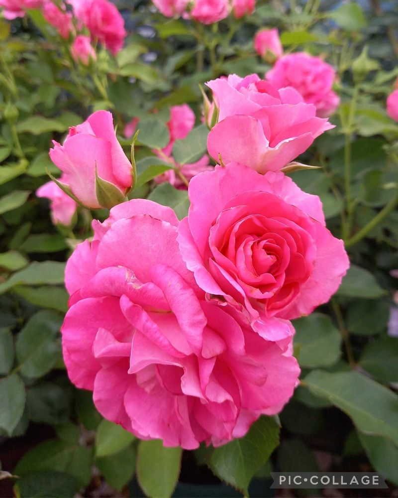 ショッキングピンクの花色が華やかな花付きの良いバラです💗