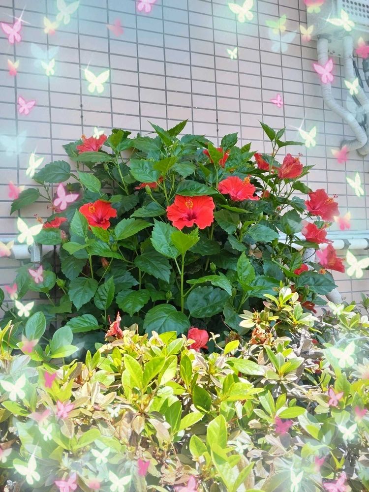 マンションの植え込みに真っ赤なハイビスカス🌺が沢山咲いていました😍🤩🤗💕💕