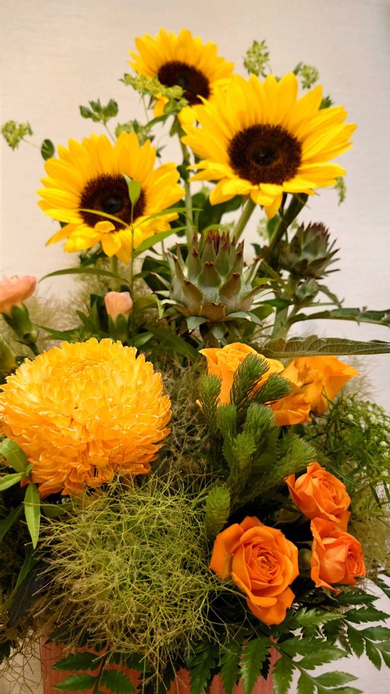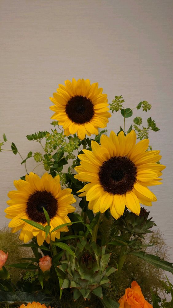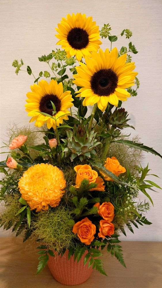 今週は真夏の太陽のようなヒマワリ🌻とオレンジの花たちです。暑っ💦