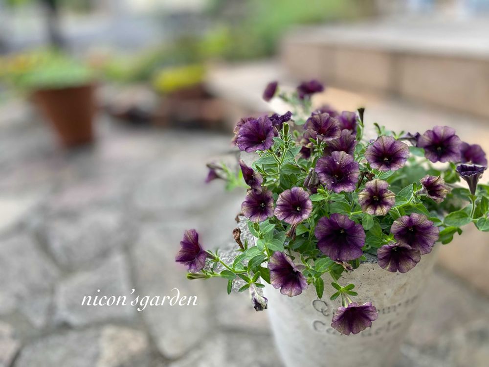 niconさんの玄関アプローチ,ブルースター,ペチュニアの投稿画像