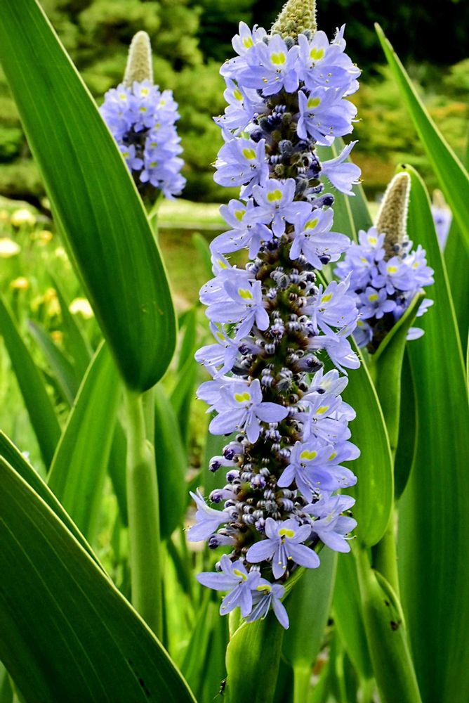 初夏~秋に、長さ8~15㎝の 穂状花序を出し、淡青紫色の 花を咲かせます。