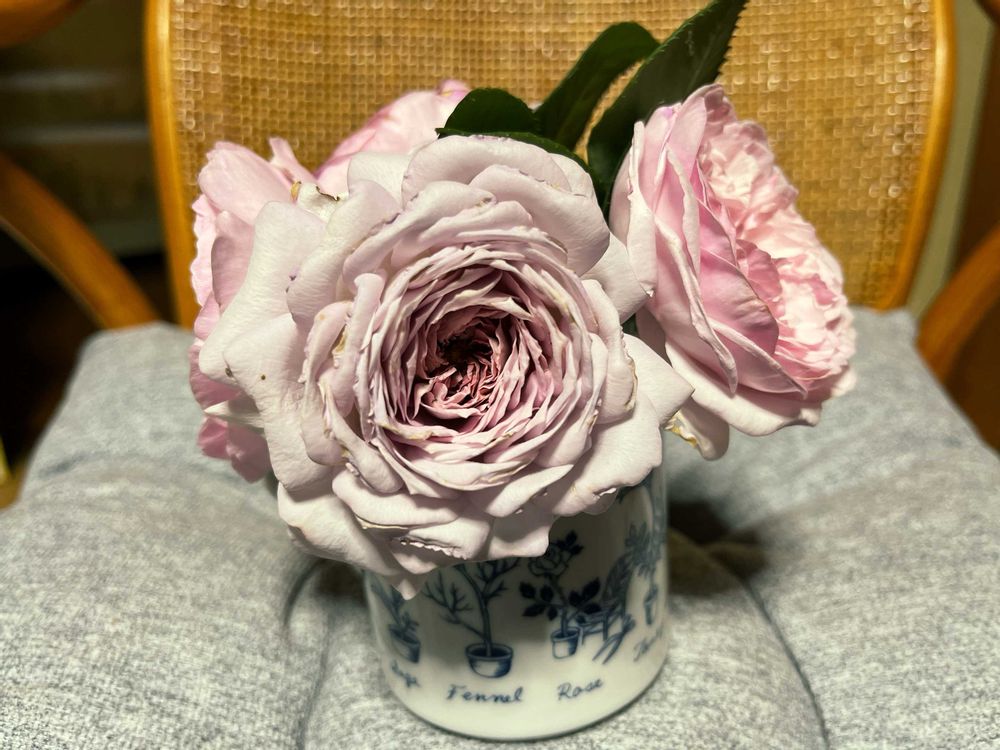 帰宅してすぐ花を切り、ご飯食べながらジロジロ見ています。