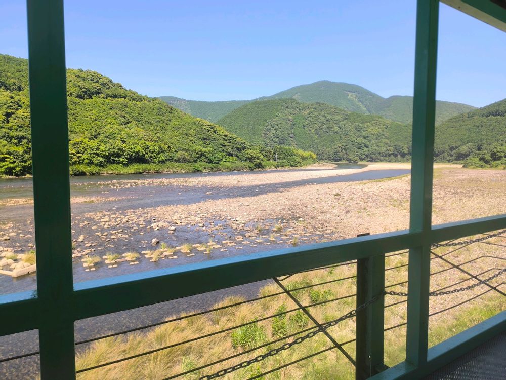 エビネ温泉の休憩所からの眺め。温泉入りながらでも同じ景色が見られる。鮎釣りしてる人が居た。釣りには全く興味無いけど楽しいんだろうか。。。僕は釣りしてるより景色眺める方が好きだからよ〜分からん。