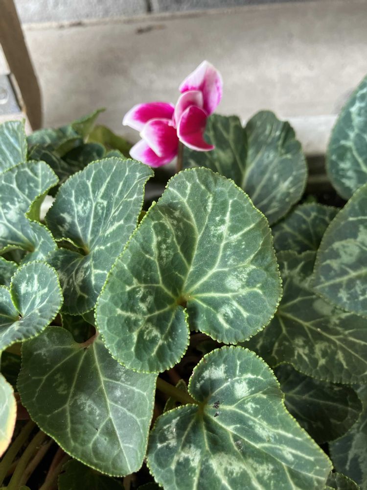 ⑤水やりながら夏越し 花が上がって来た 今日32℃最低20℃強いガーデンシクラメン