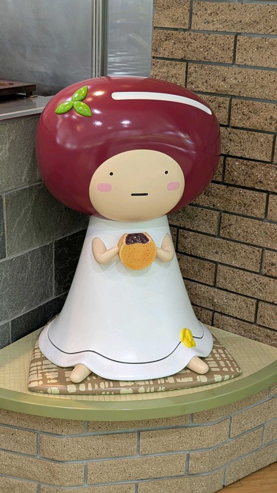 目の前で焼きあがる御座候の回転焼を眺めながら熱々を食べる。