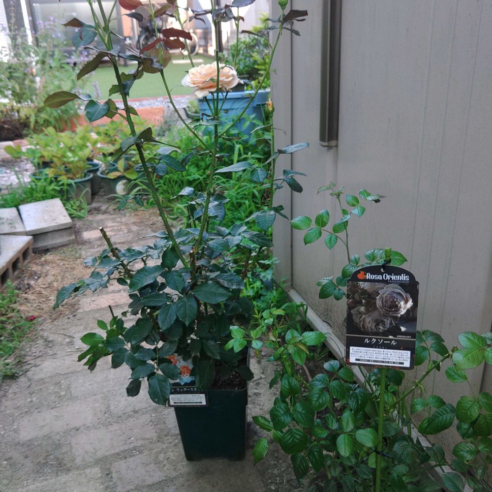 ネット注文からのバラの家実店舗引取にて迎えたベンウェザースタッフ。二番花らしく、小さめとのことですがとてもキレイですね~。今後がすごく楽しみ。ルクソールもお迎え。
