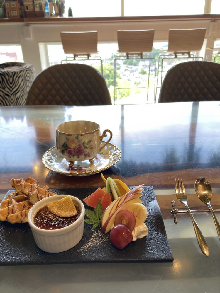 デザート、ワッフル、クリームブリュレ、フルーツの盛り合わせ🥰