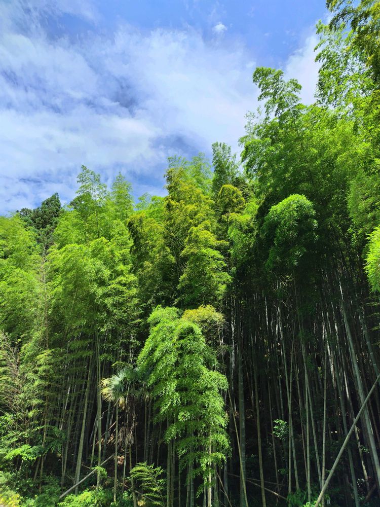 青々とした竹林と青空と白い雲で爽やかな色ですね〜こんな景色見たら気持ちも晴れるわね🌿😃