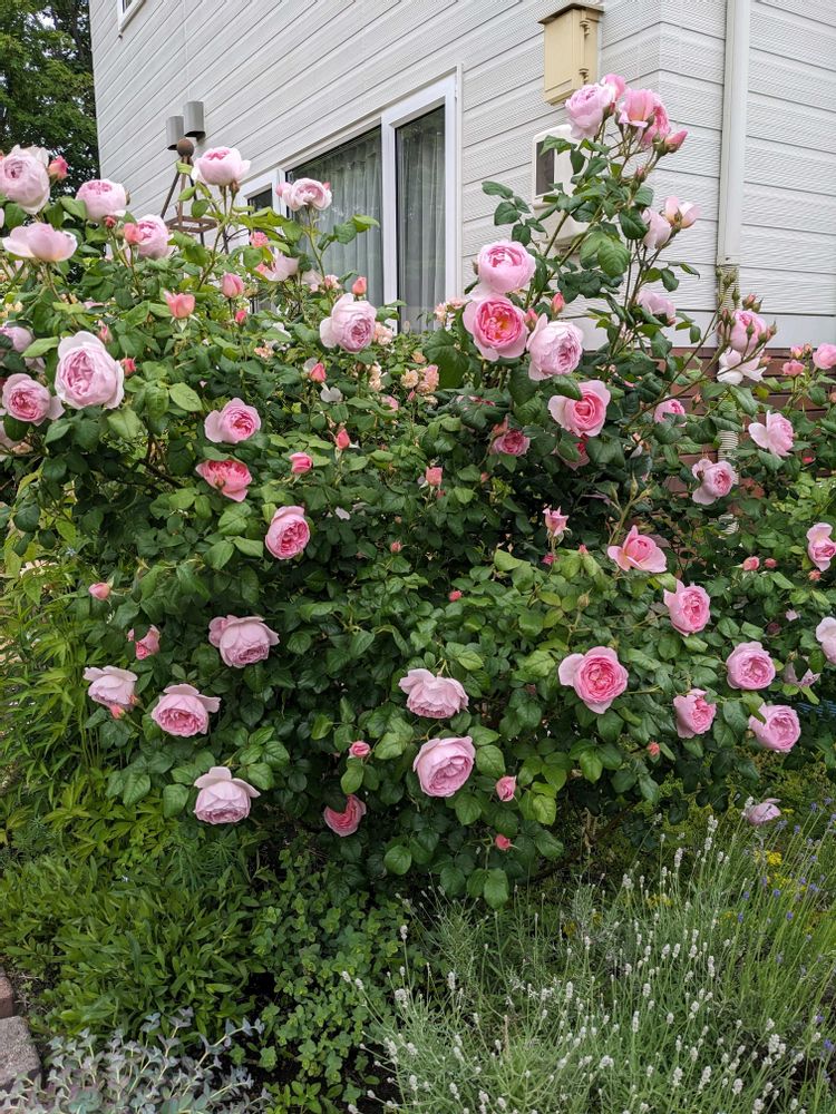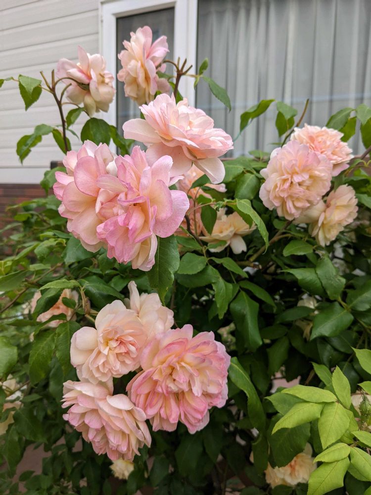 去年に続き、調子よく咲いてくれました😄💕一昨年はうどん粉ひどかったんだけど、何が違うんだろう…🤔ふた株入りなのでもりもりのボリュームです🌹✨