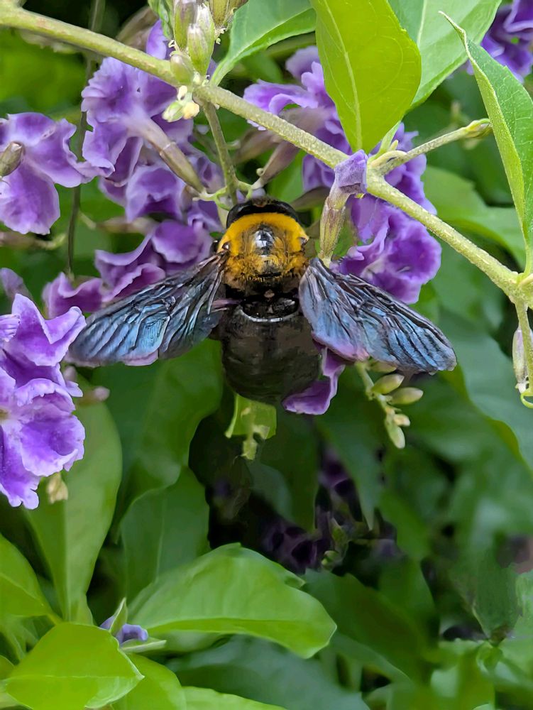 クマバチってじっくり見たことなかったですが、綺麗ですねー。笑