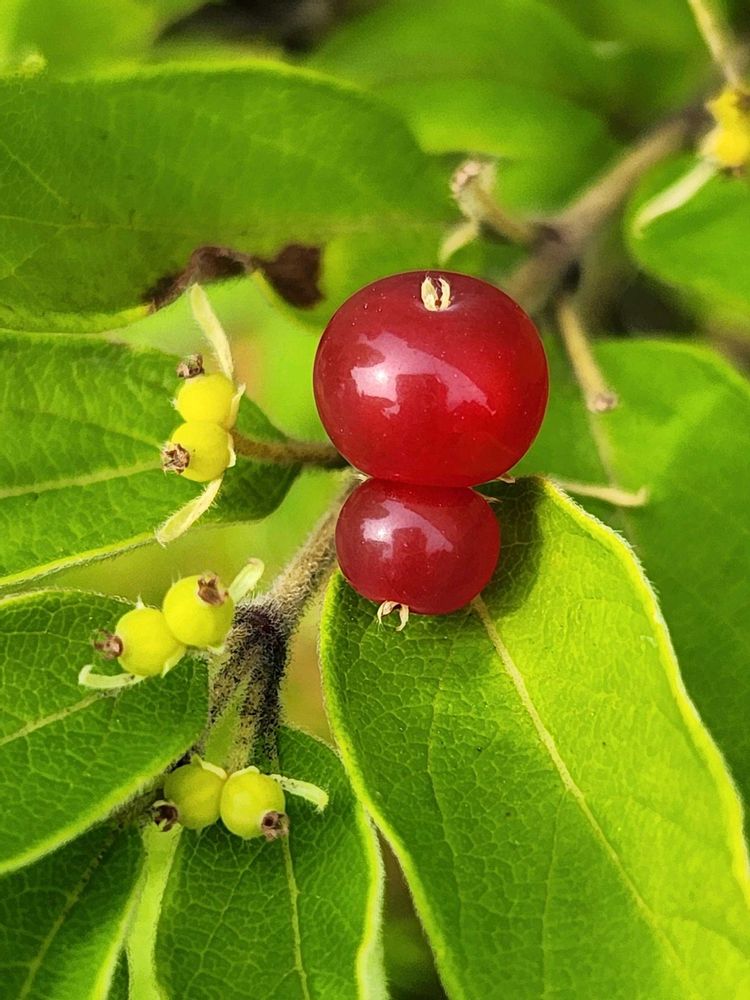 ヒョウタンボクってこんな可愛い真っ赤な実がなるのね🔴🔴🔴