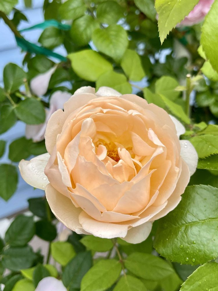ウォラトンオールドホールらしいクリームカラーとふんわりしたカップ型の花 散らないで欲しいけれど