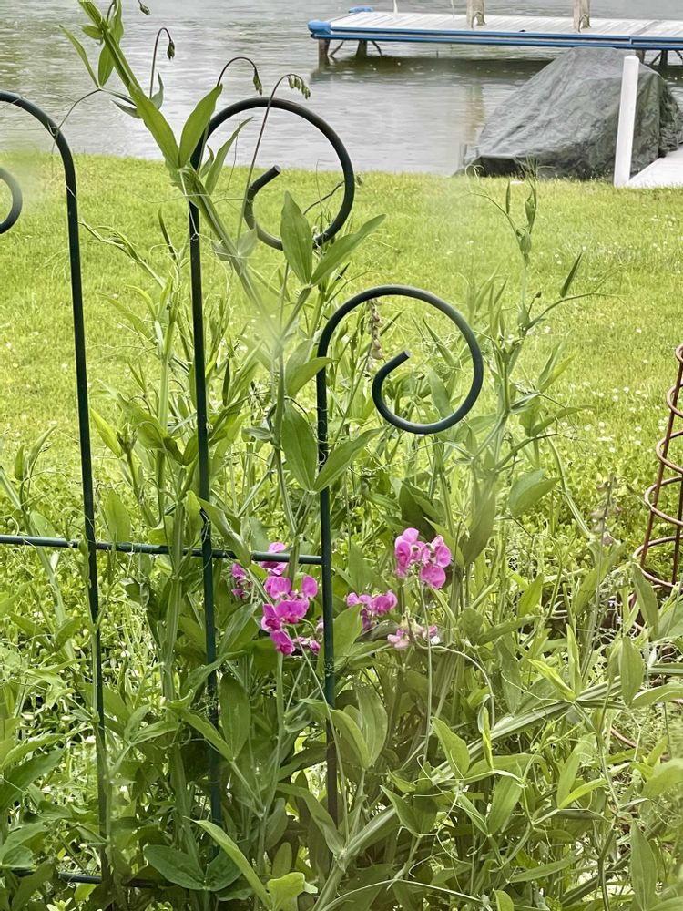 屋内に戻ったらスイートピーが咲き始めているのが見えました