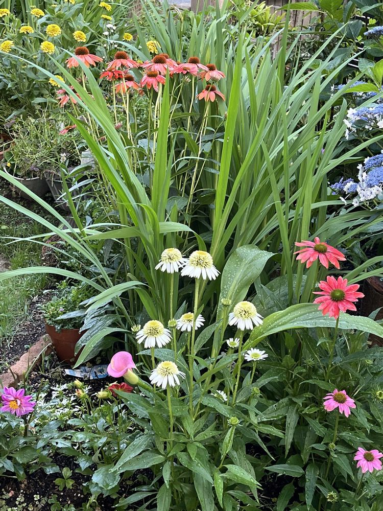 今年は、ヒメヒオウギズイセンの葉が、勢い良く他の花の邪魔をしてる感じ😓