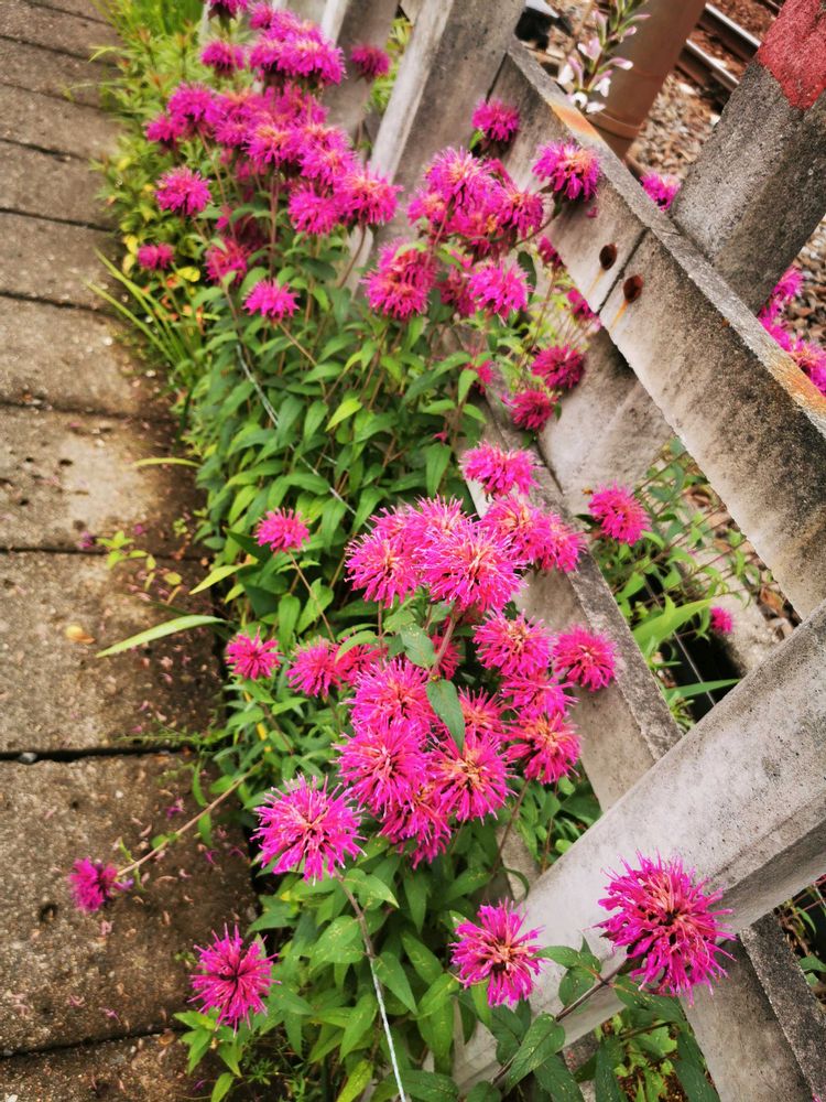 線路脇の道沿いにたくさんのモナルダが咲いていました。🩷