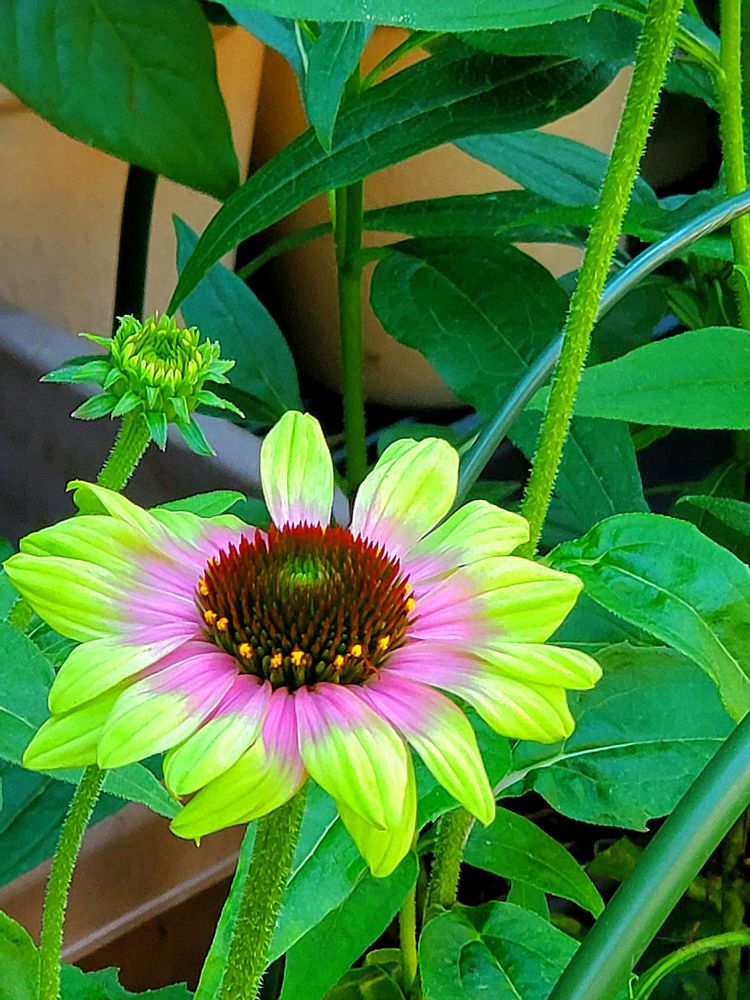 エキナセアヴィテージライムですねぇ😊ツイスターより小花でちょっと💚🩷キツイ感じですねぇ😊私とオソロですねぇ🙋🏻♀