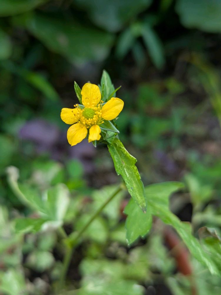 斑入りゲウム、場所が悪いので、掘り上げて、おいたら咲いてました。