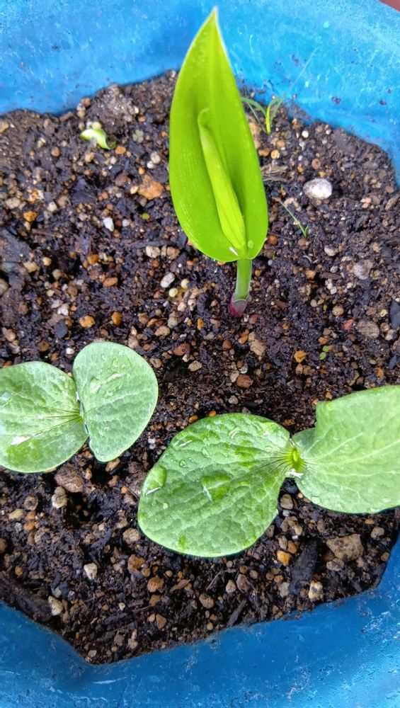 グロリオサさんの芽と、かぼちゃの芽です。今年も、グロリオサさんの花が、見られるのは、嬉しいです。🥰