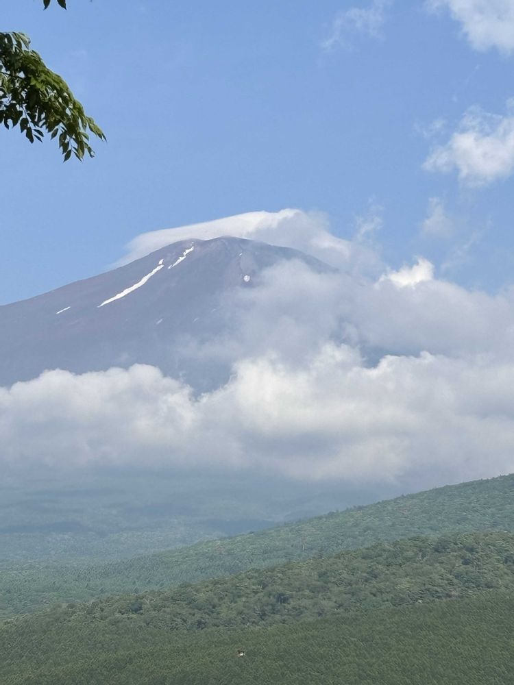 昼間の富士山🗻、夜も山小屋の灯りが,見えてました。
