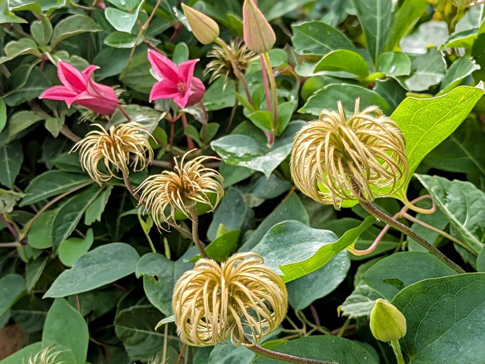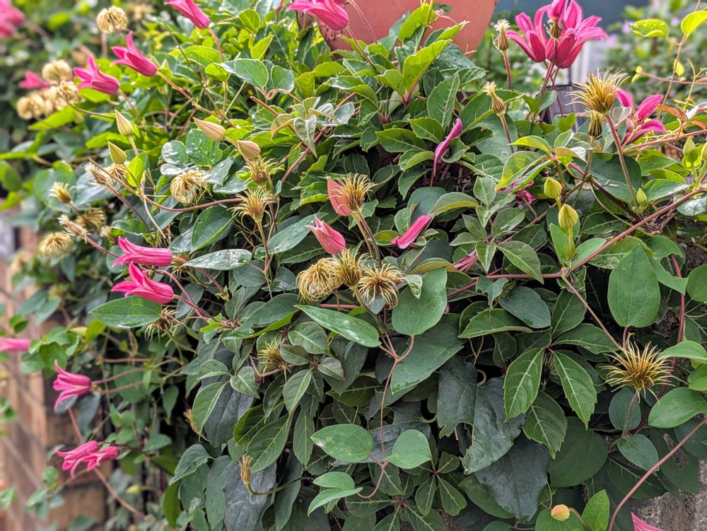 朝の涼しいうちに、ウェルカムボードに覆いかぶさるくらいに、元気に伸びたクレマチスの葉っぱを✂️したのそしたら?