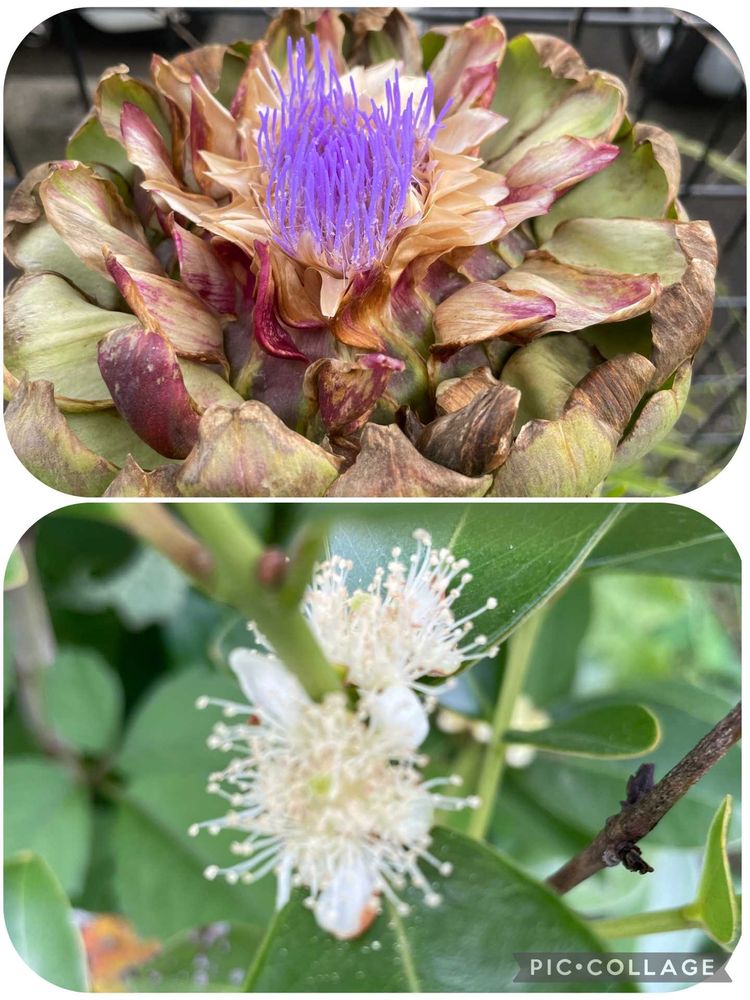 アーティチョウクとグワバ花が咲いた。2本共花着いたので今年はグヮバ増産💃