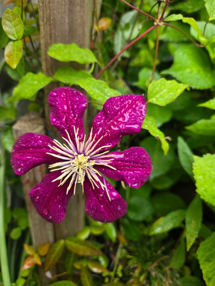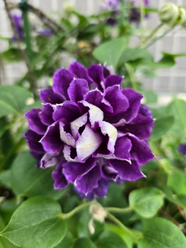 ②八重咲きクレマチス新紫玉さんは6月初旬に開花💜💚💜