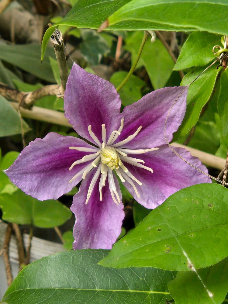 ③今朝は、薄いパープル💜🤍クレマチスさん開花(*´∀`)♪✌
