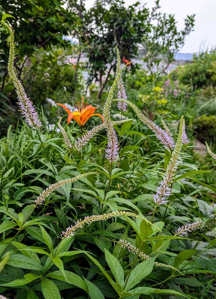 ①ヒメシャラ②チンシバイ(庭ナナカマド)③アジサイ④クガイソウ⑤マツモトセンノウ
